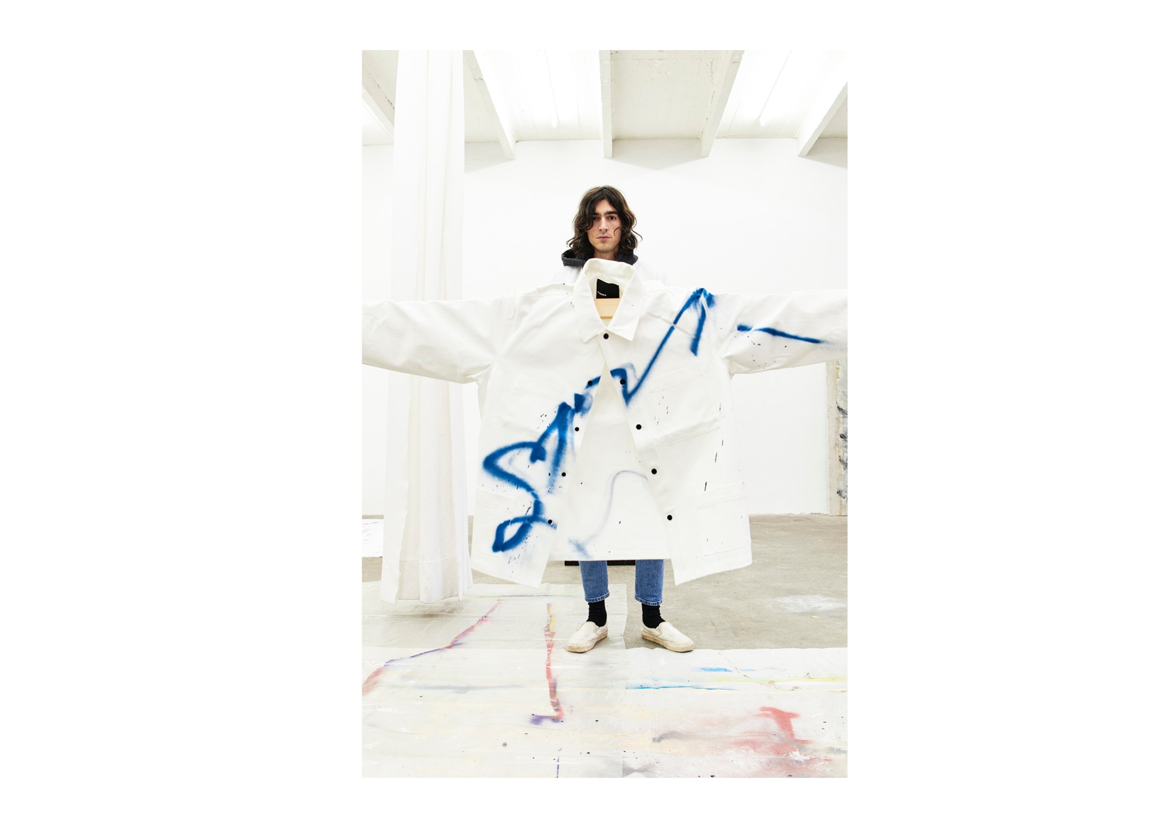 DM (Direct Message), 2018, aerosol painting on PVC tarp, 195 x 130 cm. Courtesy the artist & Spiaggia Libera, Paris.